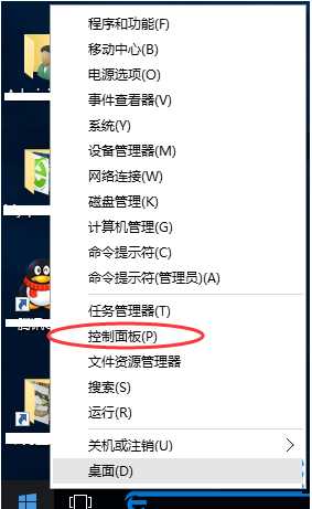 1、首先鼠標(biāo)右鍵開(kāi)始菜單,選擇“控制面板”。