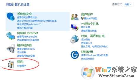 2、打開(kāi)控制面板后,點(diǎn)擊綠色字體“程序”。