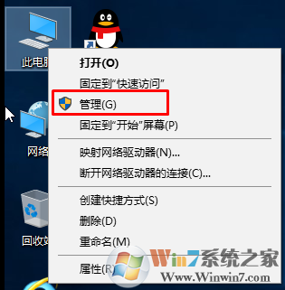 1、首先鼠標(biāo)右鍵點(diǎn)擊Win10系統(tǒng)桌面此電腦圖標(biāo),在右鍵菜單中點(diǎn)擊:管理,在打開的計(jì)算機(jī)管理窗口,點(diǎn)擊左側(cè)的磁盤管理。