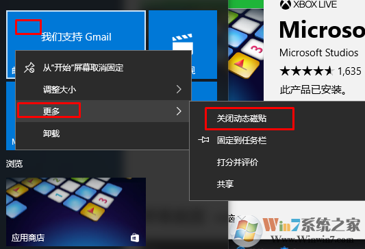 2、選擇不常用的動(dòng)態(tài)磁貼,右鍵選擇“從開始屏幕取消固定”。如果想保留的話就選擇關(guān)閉動(dòng)態(tài)磁貼