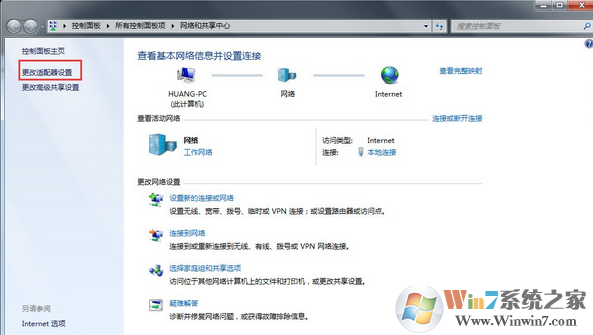 3、點(diǎn)擊左側(cè)的“更改適配器設(shè)置”,如下圖所示: