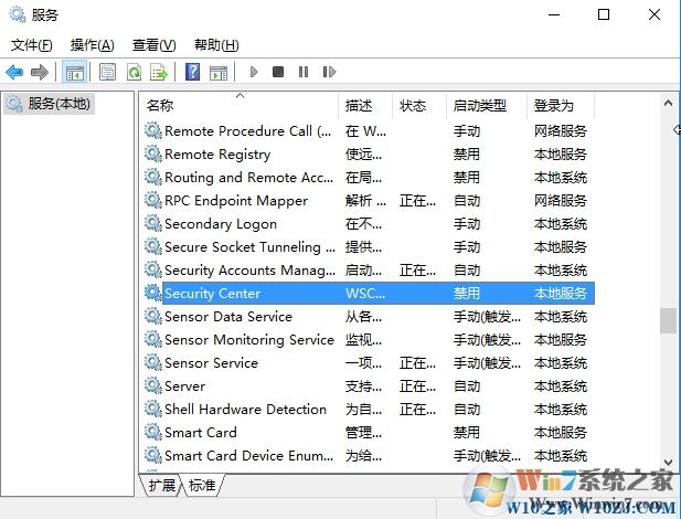 2、打開本地服務(wù)后,我們找到“Security Center ”服務(wù);