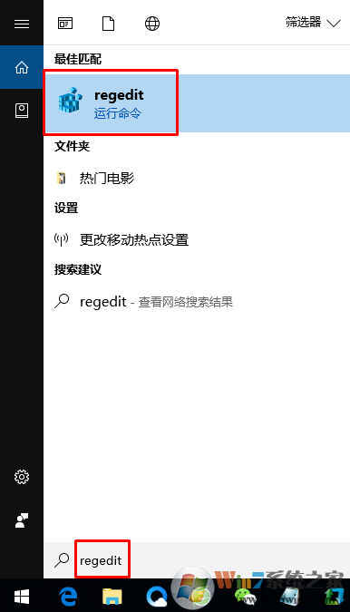 1、win+s打開小娜、在小娜中搜索并運行regedit;或者win+r打開運行窗口