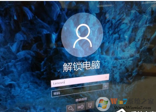 6、按回車鍵,或者使用鼠標(biāo)點擊屏幕,你將看到Win10登錄界面。這時我們可以看到,我們的名字已經(jīng)顯示為“解鎖電腦”。