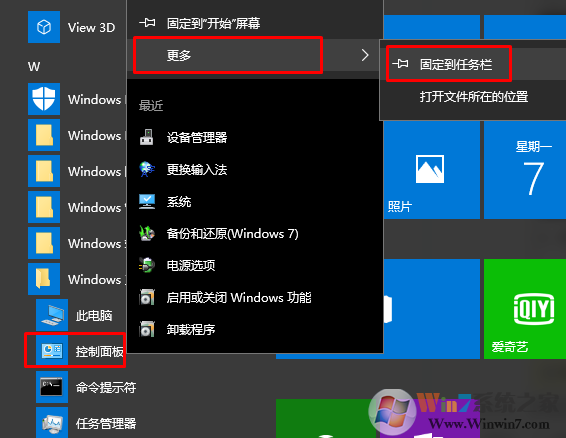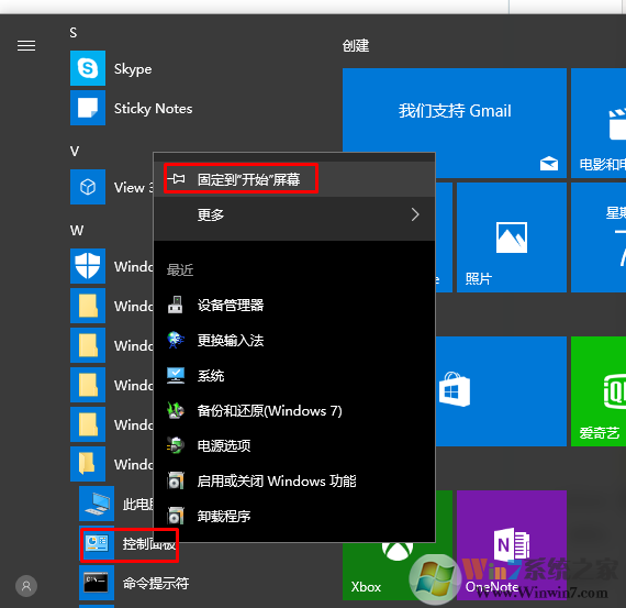 將控制面板固定到開始菜單,或者顯示在桌面