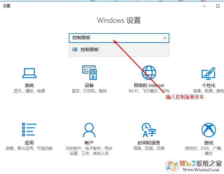 2、在設(shè)置中搜索控制面板。