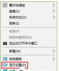 1、同樣在桌面上單擊右鍵,選擇【顯示設(shè)置】;