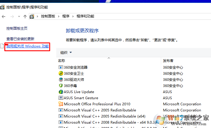 3、選擇啟用或關(guān)閉windows功能