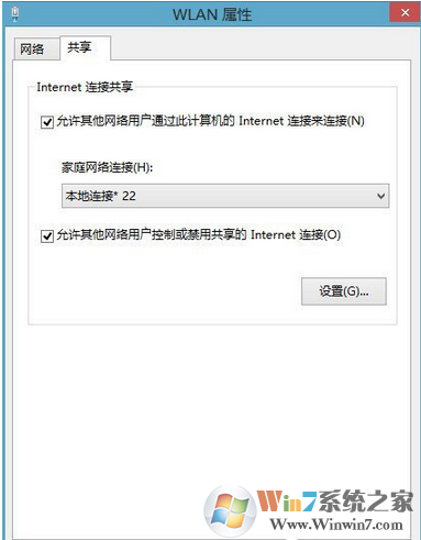 如上圖所示,我可以上網(wǎng)的無線網(wǎng)卡是我的WLAN設(shè)備,我要把它共享給我的:本地連接* 22。讓這個虛擬Wifi有數(shù)據(jù)來源。我們右鍵可上網(wǎng)的網(wǎng)卡設(shè)備,屬性,共享,勾選所有框,選擇對應(yīng)的虛擬WIFI網(wǎng)卡后確定。