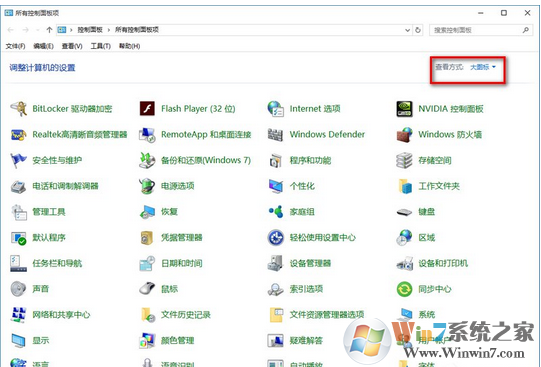 2、打開控制面板后左上角有個查看方式,選擇大圖標;