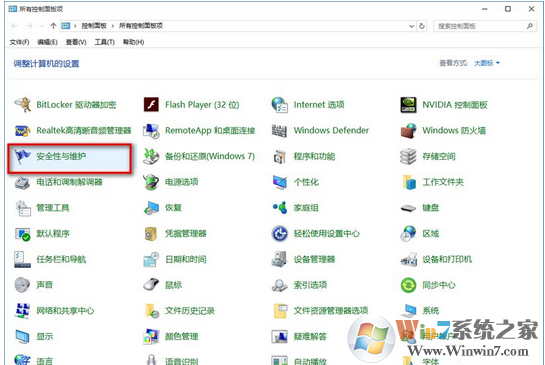 3、然后選擇安全性與維護;