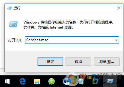 1、在Win10系統(tǒng)下載中按Win+R打開運行,然后輸入Services.msc確定;