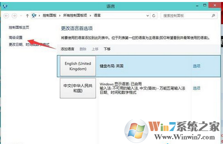 3、高級(jí)設(shè)置下面點(diǎn)擊更改語(yǔ)言欄熱鍵