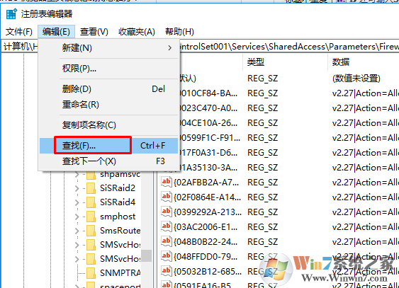 2、在打開注冊表后,點擊【編輯】》【查找】;