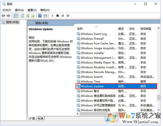 2、這時(shí)我們就打開了服務(wù)界面,我們以Windows Update服務(wù)為例,在服務(wù)界面找到該服務(wù)后雙擊打開;