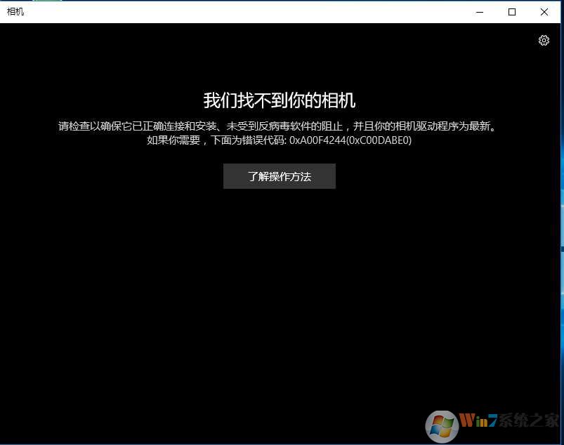 3、如果沒有安裝攝像頭的話則會出現(xiàn)“我們找不到你的相機”提示;