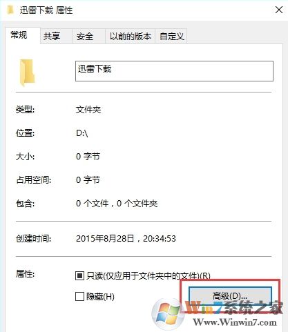 2、然后右鍵點擊你要加密的文件夾,屬性,并點擊高級按鈕,如圖: