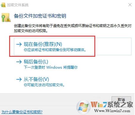 5、備份文件加密證書,現(xiàn)在備份,如圖: