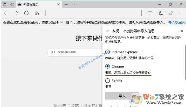 1、從移動(dòng)端的Google Chrome或者M(jìn)ozilla Firefox同步書簽只需要直接將PC版的瀏覽器書簽導(dǎo)入到Edge: