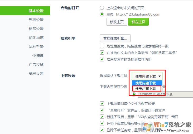 2、在基本設(shè)置---下載設(shè)置---默認(rèn)下載工具中設(shè)置為迅雷下載。
