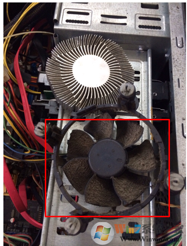 2、風扇上積壓的灰塵太多了,需要進行清理,臺式機直接拿高功率的吹風機直吹即可,筆記本的話可以上百度搜索相關(guān)的拆機教程采集清理??捎醚浪⒌人⒆铀⒁幌嘛L扇。