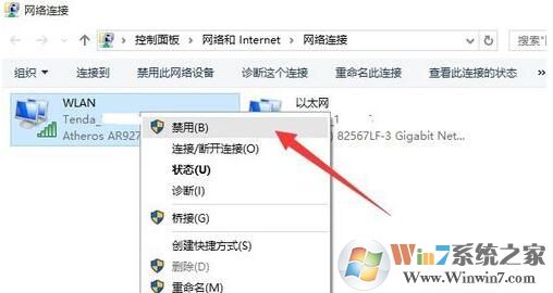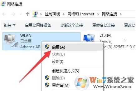 4、待對應(yīng)的網(wǎng)絡(luò)連接圖標被禁用后,再次右擊此網(wǎng)絡(luò)連接,從其右鍵菜單中選擇“啟用”項。