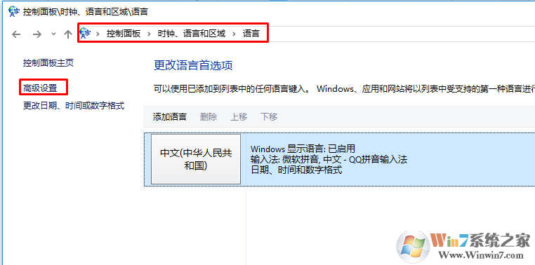 按Win+X—控制面板—時(shí)鐘、語(yǔ)言和區(qū)域—語(yǔ)言—高級(jí)設(shè)置,
