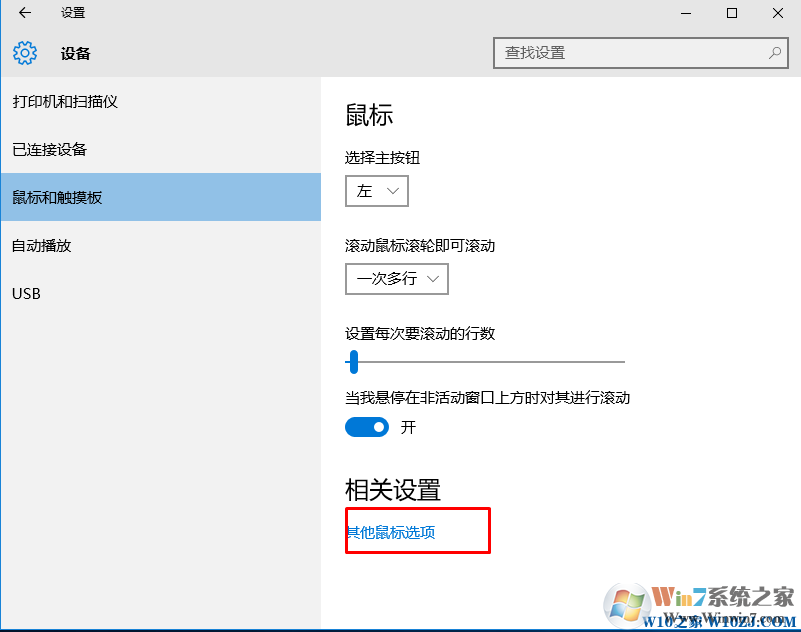 3、接下來選擇“鼠標(biāo)和觸摸板”然后在右側(cè)點(diǎn)擊“其他鼠標(biāo)選項(xiàng)”;