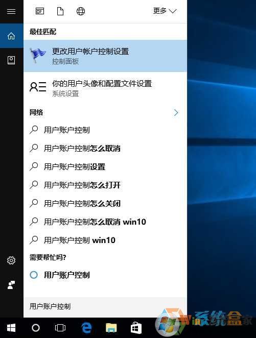 1、在任務(wù)欄搜索框中輸入用戶帳戶控制,然后打開;