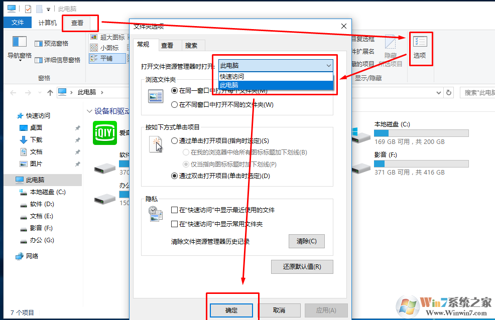 打開我的電腦---查看----將下圖紅框種的選項選擇為此電腦----最后確定即可。