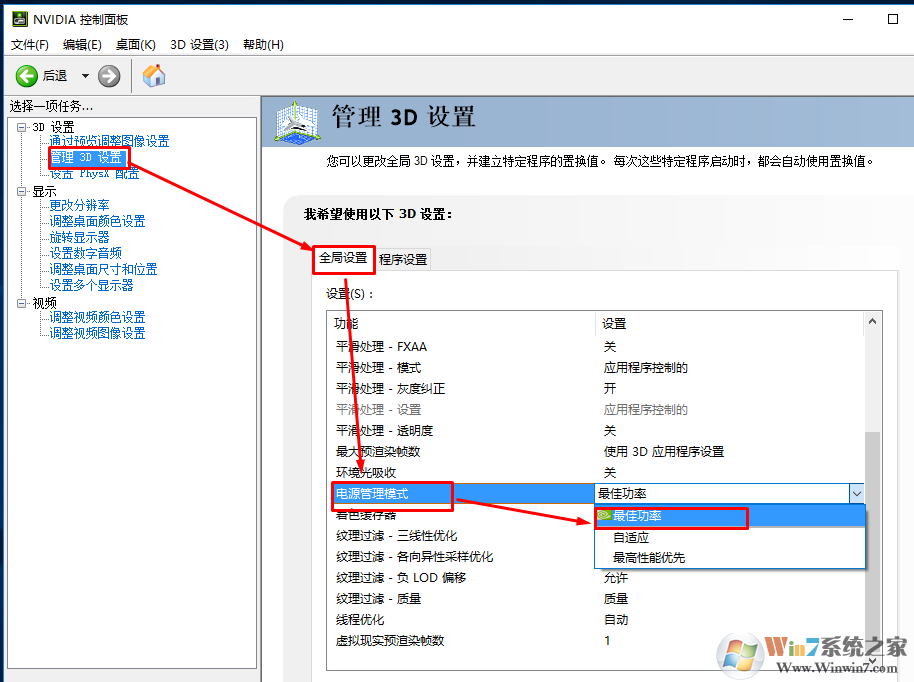 N卡的話,右鍵進入nvidia控制面板,選擇3D設(shè)置---全局管理---電源管理模式---最高性能優(yōu)先。