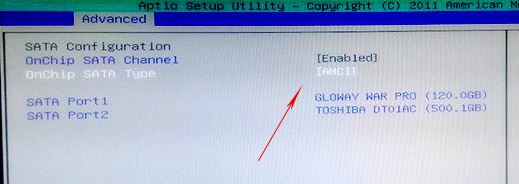 BIOS中也要開啟AHCI模式才能發(fā)揮SSD的真正運行速度,在進入主板的BIOS后,將“Advanced”→“SATA Type”項目下按下回車鍵,將SATA字樣的選項設(shè)置為 AHCI 保存設(shè)置即可。不同主板會有不同的名稱,但是幾乎都是SATA開頭。