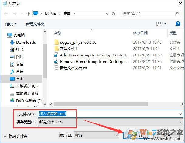 2、接下來選擇文件另存為,文件類型選擇所有文件,名稱隨意,擴(kuò)展名為“.cmd”把它保存下來。
