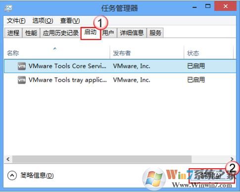 5、在任務管理器的“啟動”選項卡上,針對每個啟動項,選擇啟動項并單擊“禁用”,如圖: