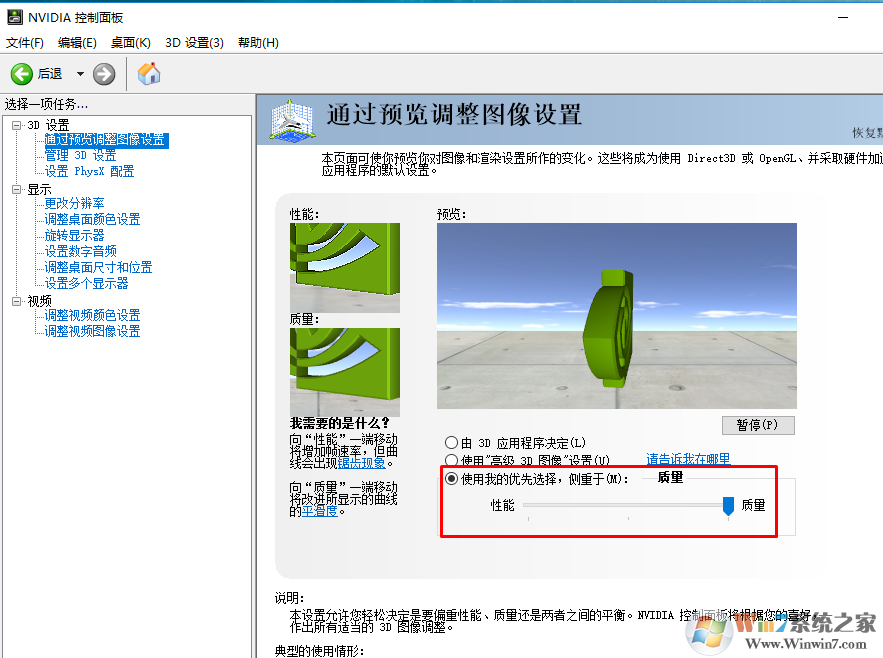 高性能用戶的設置方法比較簡單,勾選使用的我有限側重,只需要將總體的畫質側重為質量即可。