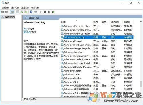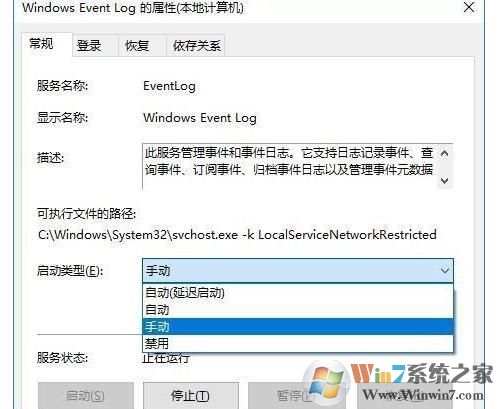 2、找到【W(wǎng)indows Event Log】,雙擊它,將“啟動類型”修改為【手動】,然后點【停止】,“確定”即可。