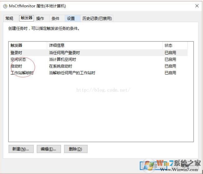 3、觸發(fā)器“登陸時(shí)”,是系統(tǒng)自帶的。紅圈圈中的三個(gè)觸發(fā)器是我手動(dòng)添加的,點(diǎn)擊左下角的新建即可添加新的觸發(fā)器。