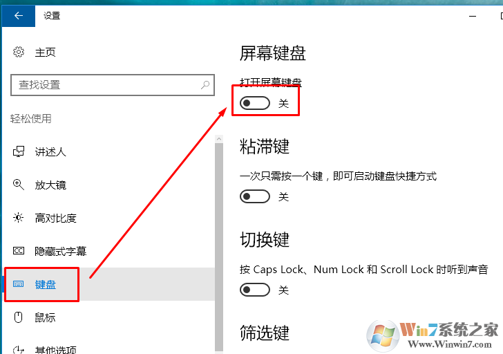 3、選擇鍵盤、然后打開屏幕鍵盤即可。