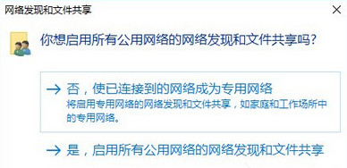 2、在窗口中,點(diǎn)擊“是,啟用所有公用網(wǎng)絡(luò)的網(wǎng)絡(luò)發(fā)現(xiàn)和文件共享” 即可,如下圖所示: