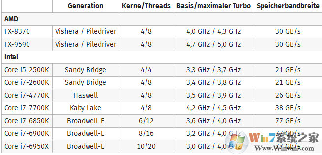 該測試一共使用了9顆處理器,有AMD FX,也有2代/4代/6代酷睿i5/i7甚至包括Broadwell-E,參數(shù)如下——