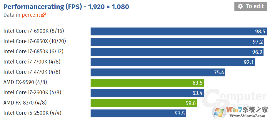 可以看到,游戲幀數(shù)與CPU核心數(shù)呈現(xiàn)正相關(guān),一個例外是i7-6900K和6950X,前者主頻倒是多了200MHz。