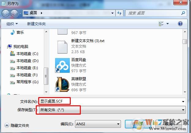 2、點(diǎn)擊文件—另存為 ,設(shè)置保存類型為 所有文件,然后文件名為 顯示桌面.scf。cncxm.com