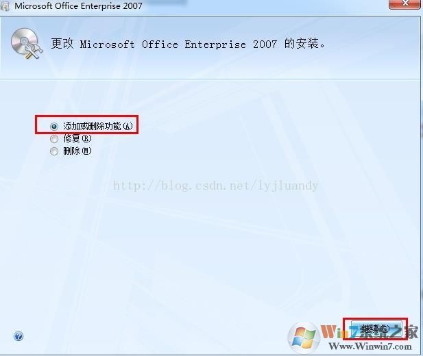 3、單擊“添加或刪除功能”,然后單擊“繼續(xù)”