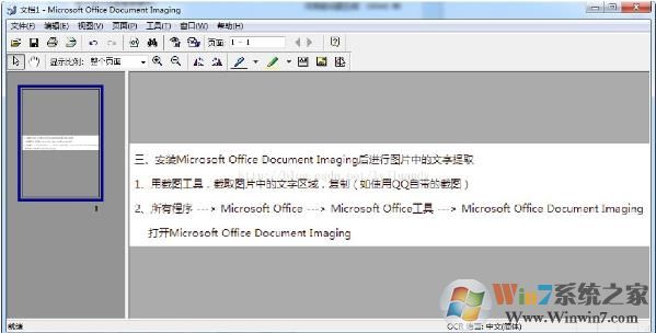 三、安裝Microsoft Office Document Imaging后進(jìn)行圖片中的文字提取