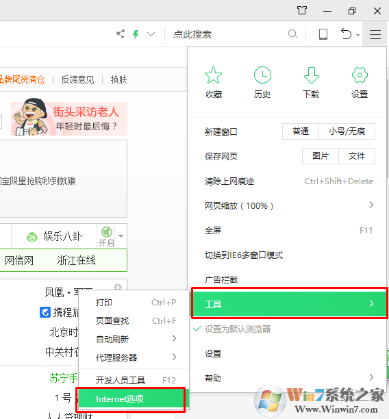 1、打開任意瀏覽器,打開設(shè)置---Internet選項。