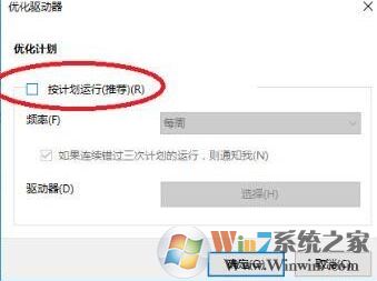 4、在隨后出現(xiàn)的優(yōu)化驅(qū)動器界面中,去掉“按計劃運行(推薦)”勾選,點擊確定即可,如下圖所示: