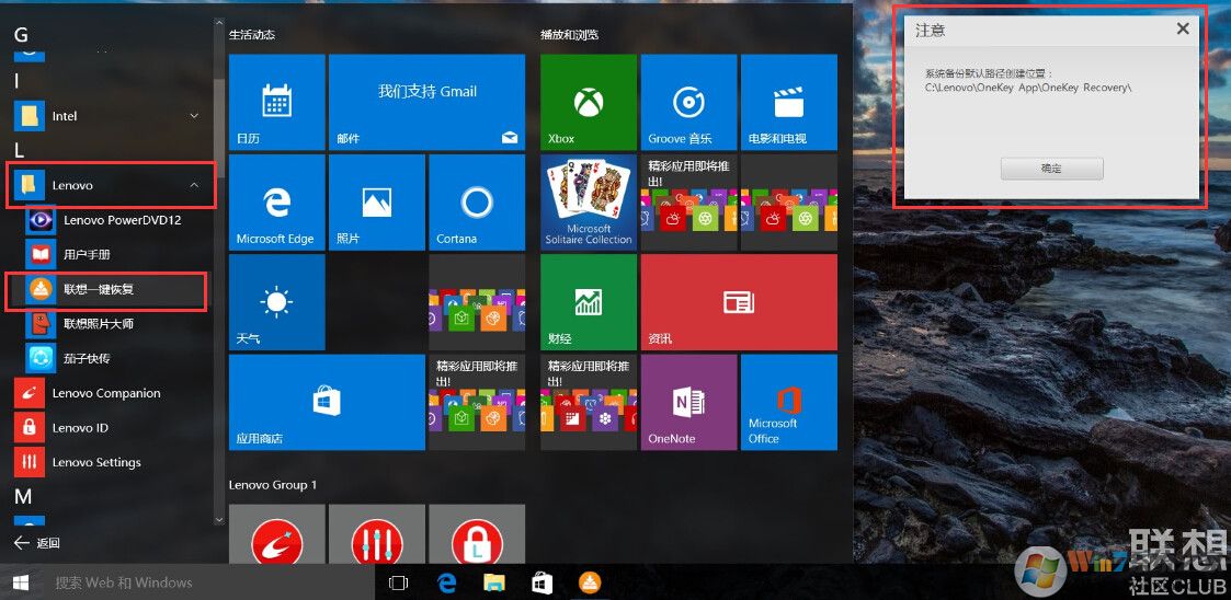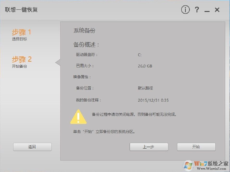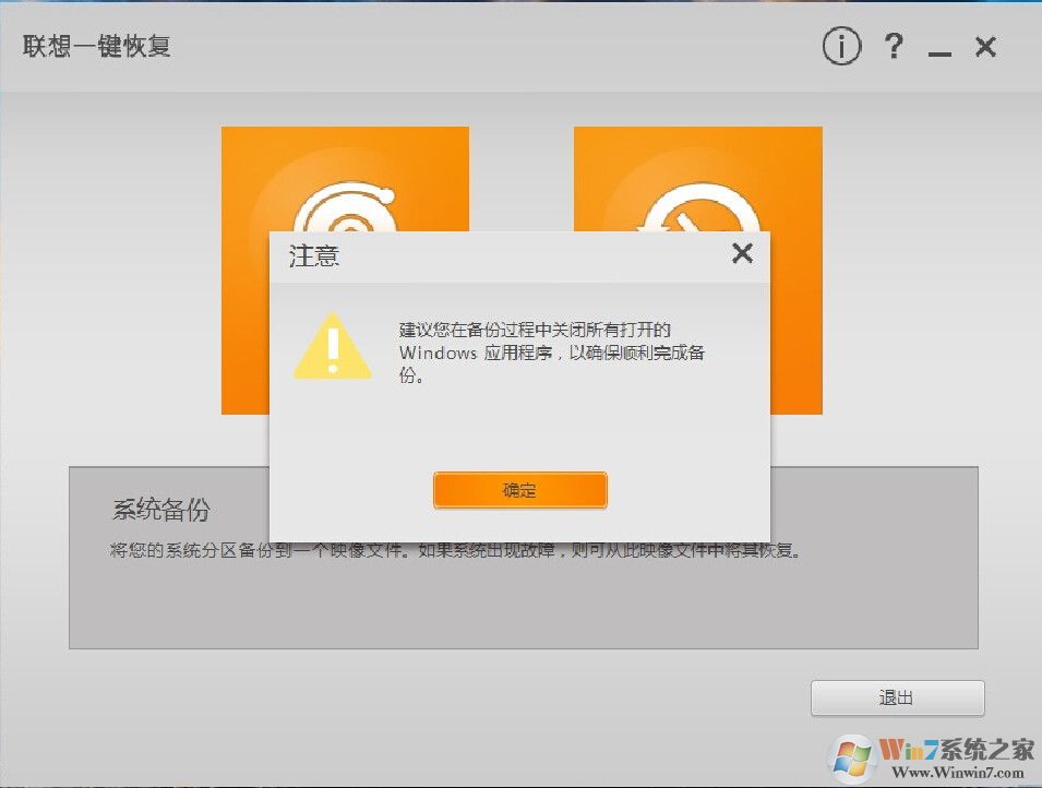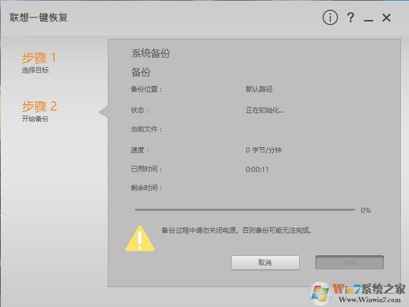 5、備份完成之后我們就可以通過第一步中的軟件或者是開機按聯(lián)想獨有的電源鍵邊上的一鍵還原系統(tǒng)鍵來恢復(fù)現(xiàn)在備份的系統(tǒng)了。
