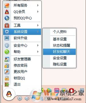 2、登錄成功后,點擊左下角主菜單,依次點擊,系統(tǒng)設置,好友和聊天,單擊進入;