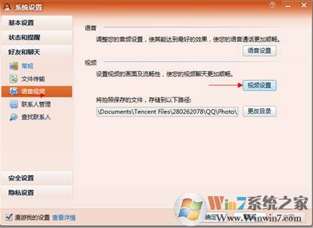 3、進入系統(tǒng)設置界面,在這個界面你可以進行的操作有,語音設置,視頻設置,更改拍照文件存儲路徑。點擊視頻設置,將會彈出攝像頭的設置;