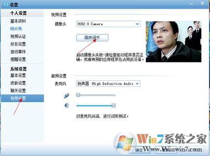 (2)進入設置后點擊視頻設置,畫質調節(jié),可以調節(jié)攝像頭;